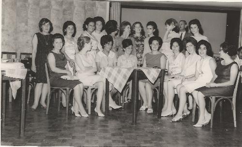 Logo após a inauguração dom novo salão de danças do Jacarezinho Clube, a parte remanescente do antigo passou a funcionar como bar e também uma espécie de sala de estar, onde as pessoas permaneciam conversando. Nesta imagem um grupo de jovens daquela sociedade estão reunidas na parte do antigo salão possivelmente para um encontro de confraternização.