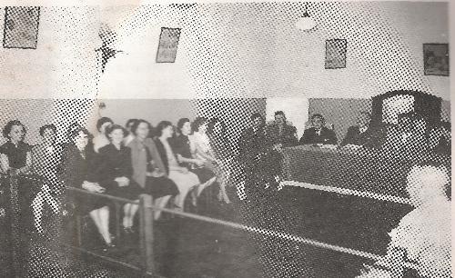 No pavilhão do Colégio Estadual Rui Barbosa (então ainda Ginásio) realizada no ano de 1945, reunem-se os professores daquele estabelecimento de ensino com o prefeito Levy Taborda. Presente também o grande líder político de Jacarezinho, Benedito Moreira. (Foto extraída do livro "Meu Ginásio Rui Barbosa, de autoria do Prof. Thomaz Aimone, edição de 1988).