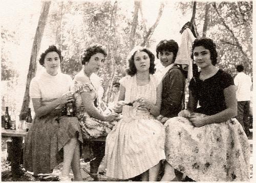 Cinco jovens jacarezinhenses dos anos 60 participam em um churrasco. Aliás, uma delas está com um pedaço de carne nas mãos... As duas das extremidades não fora identificadas mas as centrais, a partir da esquerda são: Elsa Barros, Romilda Souza e Regina Souza, as duas últimas, irmãs. (Acervo: Romilda Souza).