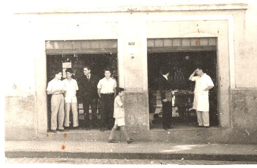 O Sr. Anésio de Almeida Leite era uma pessoa muito querida em Jacarezinho. Farmacêutico competente e conceituado, além de exemplar chefe de família, era também político respeitado na cidade, onde se elgeu vereador por várias legislaturas. Sua farmácia era ponto de encontro de amigos, políticos e intelectuais, sendo memoráveis as tardes à sua frente. O prédio onde ela funcionava, talvez o ponto mais antigo de farmácia em Jacarezinho, ainda hoje mantém uma em seu lugar, a Pharmácia Menino Deus. Nestan imagem, de 1947, o "seo" Anésio encontra-se trajando terno escuro, na porta da esquerda. (Acervo, Famílias Anésio Almeida Leite/Jarbas Ribeiro Araújo).