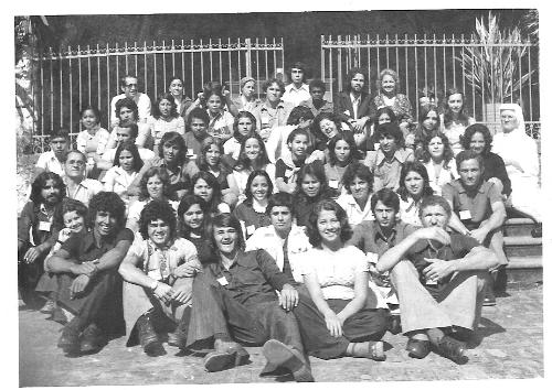 Essa foto registra um momento importante na vida dos jovens da época do final da década de 70 ou início de 80. Trata-se de um Retiro Espiritual que se denominava “O Dia da Verdade”. Jovens de ambos os sexos da nossa comunidade religiosa local e também de outras paróquias da região participavam do evento. Aqui os jovens estão na escadaria da antiga gruta do Lar São Vicente de Paulo onde com certeza era o intervalo do café ou almoço.