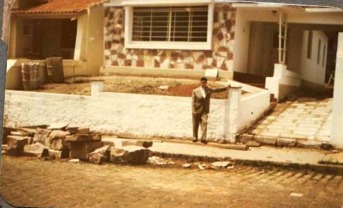 Esta foto mostra a casa da rua Costa Junior, entre a casa onde morava o Dodô (Dr. Durval Machado), e a que abriga o consultório do dr. Benedito. Na imagem, Ulisses Costa está em frente dela. a grande janela frontal era a do escritório, que tinha entrada pelo pequeno terraço. atrás ficava a residencia. A foto é de 1953 e a família residiu nessa casa até 1957, quando mudou para a quadra de cima, ao lado da Igreja Adventista. Quanto ao escritório, com a mudança, foi transferido desse local para aquele prédio onde hoje é a garagem do "miguelzinho" (foto que foi publicada). na ocasião em que a foto foi tirada, o nome da rua era Ivahy. Quando Ulisses saiu do predinho na esquina da catedral (foto a ser publicada), o escritorio teve nesse local sua 2ª sede. Nessa foto, aparece bem a arquitetura peculiar daquela edificação; estilo "moderno", com elementos incomuns de decoração na fachada. (Acervo e texto, Ulisses Costa Júnior).