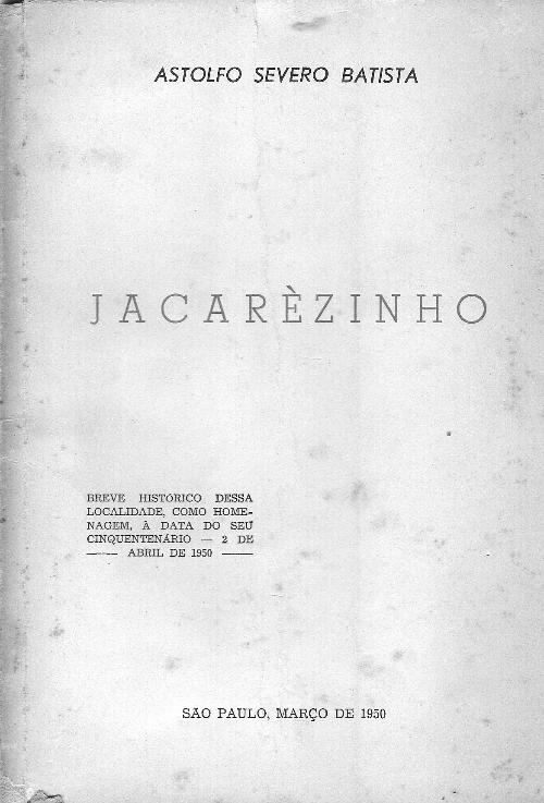 Talvez que seja este o único exemplar que ainda exista em Jacarezinho. Trata-se da obra do 1º historiador de Jacarezinho, o Dr. Astolfo Severo Batista, que a escreveu em homenagem ao cinquentenário desta cidade, comemorado em 2 de abril de 1950. Filho do Coronel Baptista, o Dr. Astolfo, misto de advogado e poeta, portador de uma notável cultura, conta com riqueza de detalhes a origem desta cidade. O livro, além da parte histórica, tem trechos também literários, principalmente com poesias de sua autoria sempre tendo como referência a cidade de Jacarezinho. Em razão de sua raridade é nosso objetivo reproduzi-lo para que os estudiosos de nossa história possam a ela ter acesso.