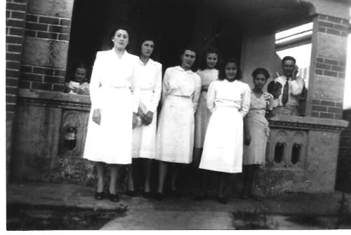 A foto do ano de 1948 registra a espera da passagem da procissão de ramos. A casa que se vê na imagem já não existe mais, ficava na rua Cel. Alcântara, ao lado da casa paroquial do Pe. Hugo. Ambas foram demolidas e em seus lugares têm novas construções. Os fiéis que se encontram na área da residência são: As irmãs Stati e Zulmira, Luzia, Alzira e Tereza e o patriarca Simão Malaghini, pai das últimas quatro mencionadas. Acervo fotográfico: Profº Américo Assis (esposo da Zulmira); intermediação e texto de Vicente Estanislau Ribeiro, Vicentinho.