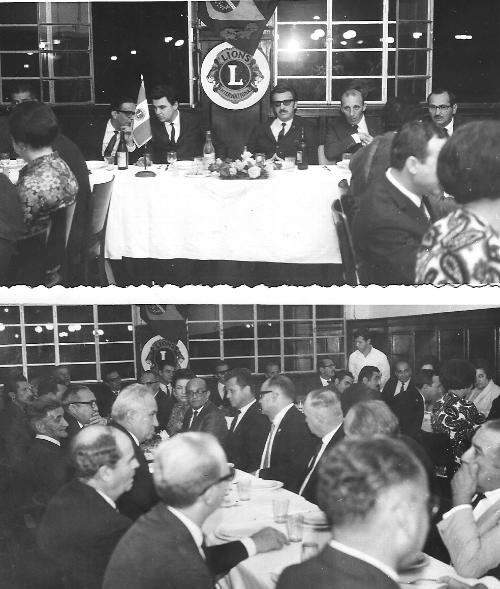 Em tempos de uma sociedade forte e unida, Jacarezinho costumava homenagear com um jantar pessoas que de uma maneira ou de outra contribuíam para o crescimento da cidade. Aqui, em imagens do ano de 1971, a sociedade local se reuniu para homenagear o médico Arnaldo Busato, então Secretário de Saúde do Paraná. A homenagem foi encabeçada pelo Lions Club que em reunião nos salões do Hotel Municipal recebeu ilustres convidados. Na foto superior o também médico e depois deputado estadual Haroldo Bianchi conversa com Arnaldo Busato, que tem ao seu lado o então presidente do clube, advogado e bancário Ayrton Furiatti. Ao lado deste o prefeito Francisco Cersósimo. Na foto inferior várias personalidades da época, como, à esquerda, os professores Arlindo Bessa Júnior e Thomaz Aimone, além do Padre Miguel Schaffer. À direita o agricultor e vereador Francisco Camargo (Chico Natel) e Jofre Elias (com a mão no rosto). À direita, na outra mesa, Nelson Gomes de Oliveira e Boanerges Elias. Conversando com o garçon o médico Domingos Módena.
