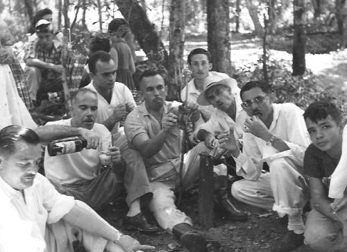 Nos anos sessenta, época em que as agências bancárias possuíam um grande número de funcionários e o Banco do Brasil era a elite deles, reunem-se eles em uma descontráida churrascada numa tarde de domingo. Tirando a carne do espeto, Newton de Menezes, que tem atrás de si, João Belez de um lado e Orestes de Oliveira do outro. Mas à direita, Francisco Rodrigues e à esquerda, em primeiro plano, o gerente da agência na época, sr. Oliva.
