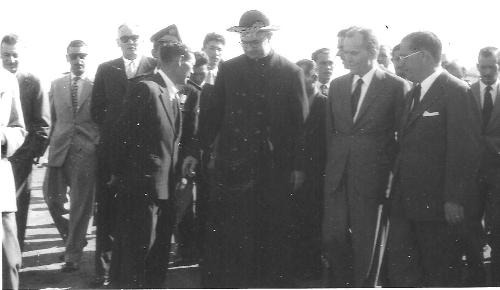 Em meados da década de 50 o Bispo D. Geraldo de Proença Sigaud, figura lendária na história de Jacarezinho, caminha para as solenidades de benção das instalações da Companhia Cristo Rei de Armazéns Gerais, que estava sendo inaugurada. Ao seu lado, à direita, os empresários Agostinho Paschoal Setti e Fausto Neves da Rocha, diretores da Companhia. Atrás deles, Péricles Pereira, farmacêutico e vereador. O Bispo foi uma das pessoas mais importantes de Jacarezinho por várias razões. Possuidor de uma cultura invejável concluiu as obras da Catedral trazendo para pintar os afrescos seu irmão Eugênio Sigaud, afrescos hoje que se constituem no mais importante acervo artístico de Jacarezinho. Concluiu também o Palácio Episcopal e deu início à implantação do ensino superior desta cidade, liderando o movimento para criação da Faculdade de Filosofia da qual foi seu primeiro diretor.