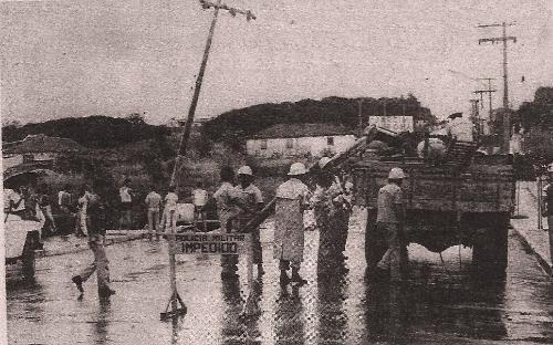 Em época de tempestades e ventos fortíssimos, em que a preocupação com o clima começou a tomar conta de todos, vale lembrar que no início de janeiro de 1981 Jacarezinho foi acometida por uma violenta tromba dágua que dominou o Ribeirão Ourinho fazendo-o transbordar e derrubando várias pontes, inclusive a da rua D. Fernando |Taddei. Como na época ainda não havia o contorno da estrada entre S. A. Platina e Ourinhos, o que obrigava os veículos a passar dentro da cidade, o tráfego foi então desviado para Cambará. Mas inúmeras casas foram atingidas, moradores perderam móveis e roupas, todavia o pior mesmo foi uma vítima fatal, arrastada pelas águas e cujo corpo somente foi encontrado a quilômetros de distância. Era a natureza já dando seu recado. O flagrante acima foi peito próximo à ponte que caíra.