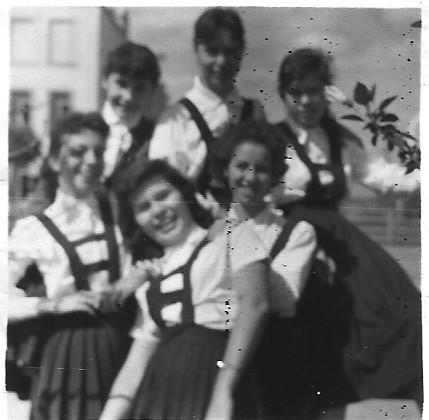 Com seu bonito uniforme, seis alunas do Colégio Imaculada Conceição fazem uma pose para a posterirdade dentro do pátio do estabelecimento. São elas, Inês Maria, Teixiera, Jane Bardeli, Rosicer Gizzi, Maria Augusta Araújo, Maria Lúcia Araújo e Marília Pedro. (Acervo, Jane Bardeli).