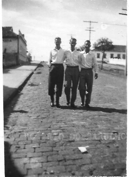 Era um feriado nacional (1º de maio). E o ano, 1954... Três jovens descem a avenida Getúlio Vargas, então já com calçamento, em direção à rua do Rosário. A calma daqueles tempos permitia que se andasse em meio da rua quase que sem perigo algum. Identificado o jovem ao centro, Dr. Antônio Baldin, hoje advogado e agricultor. À esquerda o Hotel Avenida com sua antiga fachada, atualmente em parte alterada. À direita, mais aos fundos, o prédio da Santa Casa sem ainda sua rampa lateral. (Acervo, Dr. Antônio Baldin; intermediação, Vicente Estanislau Ribeiro, Vicentinho).