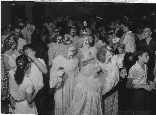 Nos antigos salões do Jacarezinho Clube, início dos anos 50, o bloco dos palhaços brinca animadamente. Na época era comum a reunião de um grupo de amigos para participar de um bloco carnavalesco nos salões do clube da cidade. Incentivados por um concurso que nada oferecia além do título de vencedor, os foliões caprichavam, em suas fantasias.