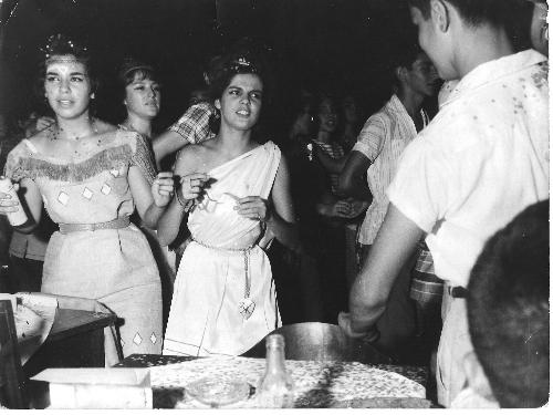 Nos tempos em que o Jacarezinho Clube movimentava os bailes de carnaval, a sociedade daquela entidade social comparecia em peso naquela promoção. E os jovens principalmente pulavam animadamente. Nesta foto -do final dos anos 50 ou início dos de 60: veja-se o lança-perfume na mão de uma delas - as jovens (identificadas como Viviane de Almeida e Cidinha Botelho) brincam nas proximidades das mesas.