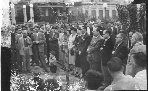 No dia 1º de junho de 1954, com muitos eventos, foi então comemorado festivamente o cinquentenário da Comarca. E um dos momentos de bastante civismo foi o hasteamento da Bandeira Nacional na praça Rui Barbosa. Presentes, dentre outros, bem à direita, o Prefeito Benedito Moreira. Ao seu lado, quase encoberto, o Presidente da Câmara, médico Abdon Augusto de Araújo. Na sequência duas pessoas não identificadas e em seguida, com o chapéu nas mãos, o Governador Moisés Lupion que tem ao seu lado o Corregedor Geral da Justiça, Desembargador Antônio Franco Ferreira da Costa. Da esquerda para a direita, logo mà frente, com os braços para trás, a figura querida de Theodomiro Cândido de Oliveira, o conhecidíssimo Miro. Vê-se mais atrás, entre o Governador e o Corregedor, um sacerdote que parece ser o Padre Carlos Giebel.