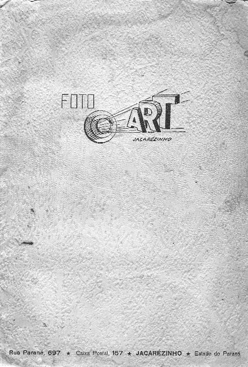 Jacarezinho teve vários bons fotógrafos que ajudaram a perpetuar sua história. Um deles foi o Foto Art, de Mário Shimakawa, instalado durante muitos anos onde hoje existe o Foto Sakura, de seu filho. Mário era um apaixonado por Jacarezinho e periodicamente montava cartões fotográficos comemorativos de aniversários importantes da cidade. Para casamentos, aniversários etc., fazia um álbum com foto única protegido por uma capa como a que mostra a imagem acima.