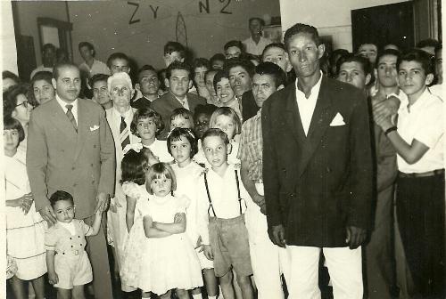 Tião "Cara-Suja' era um personagem folclórico da cidade e que aqui ficou muito conhecido nas décadas de 40 e 50. Seu nome, Sebastião, era reduzido simplesmente para Tião e acompanhado de um qualificativo que talvez nem ele entendesse direito: "cara-suja". O apelido era uma menção à sua pele, em parte rajada, em parte morena e que parecia estar sempre suja, mas só parecia. E talvez também pelo seu serviço: ele pegava dos açougues o resto das carnes que não serviam para venda e dali o levava para vender. Assim foi durante anos. Vivia solitário e esquecido pela Vila Setti tendo como diversão apenas o ver passar dos trens. E foi num desses dias que ele estava sobre um barranco vendo o trem passar que ele escorregou e do acidente resultou uma cegueira que abreviou sua vida. Nesta imagem do início dos anos 50, feita no palco do auditório da Rádio Difusora de Jacarezinho, é possível ver o Tião, à esquerda do homem de paletó preto, humilde e tímido, como sempre ele foi.