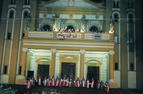 Imagem dos anos 90 nos apresenta o Coral D. Geraldo em uma de suas apresentações, desta feita defronte à Catedral Diocesana de Jacarezinho, eleita em 2000 como "símbolo da cidade". O coral D. Geraldo sempre mereceu o maior carinho da população local e é reconhecido comom um patrimônio cultural de Jacarezinho.
