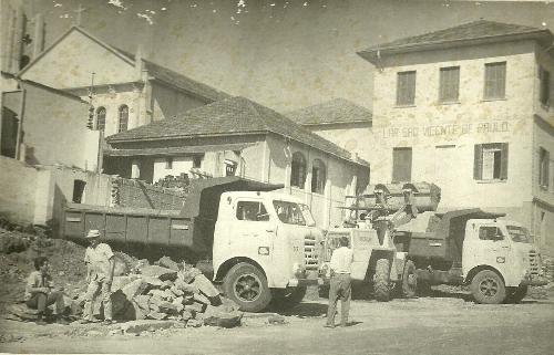 Final da década de 50 ou início dos anos 60, o Colégio Imaculada já havia se transferido da rua Paraná para seu novo prédio na avenida Getúlio Vargas. E aí, para transformar o imóvel escolar em comercial teve início a derrubada do antigo parlatório realizando-se terraplanagem para deixar o terreno ao nível da rua. Bem á esquerda é possível ver a Capela, ainda hoje existente.