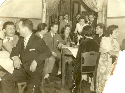 Imagem de um grupo de associados do Jacarezinho Clube em um baile nos anos 50 naquela entidade. O salão ainda era o antigo, onde hoje funciona o restaurante e dentre as pessoas identificadas se encontram, da esquerda para a direita: Miguel Afonso e Zequinha Setti )fal.) (na 1ª mesa), Octacilio Medeiros de Souza (fal.) e João Lemgruber (fal.) (na 2ª mesa). Em pé, Said Cher, Oswaldinho Alcântara, Cecília Moreira (fal.), Levi Tabora Filho e Sérgio Figueiredo.