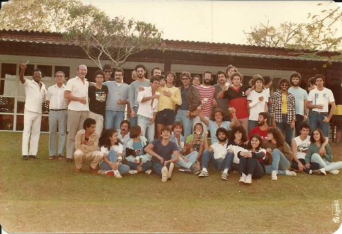 Um grupo de associados do Clube dos Papagaios, em agosto de 1984, reune-se após um torneio ali realizado. Nessa época era comum os torneios aos sábados e domingos com uma frequência enorme dos associados. Dentre tantos presentes na foto assinalamos, da esquerda para a direita, o primeiro João Venâncio (Jegão) que fazia o churrasco no clube e o administrador Luiz Massera, ambos falecidos. Ao lado deles o então presidente do clube, Aluízio Périco.