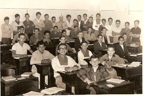 Esta foto mostra os alunos da antiga terceira série ginasial do Colégio Cristo Rei, em 1963, em sua sala de aula.