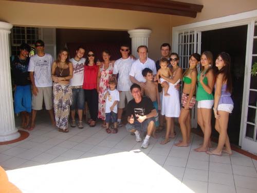 Treze anos depois, minha família cresceu bastante. Nesta imagem de fevereiro de 2010, na área dos fundos de minha casa, estou com quatro filhos (Ana Carolina foi quem bateu a foto e Rodolfo não esteve presente) mas com noras, genro e netos.