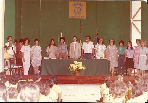 Esta a Mesa que presidiu a formatura dos alunos da 4ª série do ensino fundamental no ano de 1985 do Colégio Cristo Rei. Estou ao centro, na condição de Diretor do Estabelecimento, ladeado pelos vice-diretores e pelas professoras que ministraram aulas naquele ano.