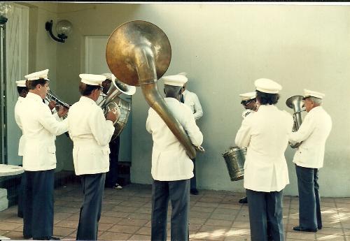 Ao longo de sua história Jacarezinho obteve grandes conquistas que, infelizmente, mais tarde transformaram-se em pesadas perdas. Seria possível fazer uma extensa relação dessas conquistas-perdas mas vamos nos ater a algumas poucas apenas: Hotel Municipal (embora o prédio ainda exista, não serve mais como hotel e restaurante); aeroporto; Associação Esportiva de Jacarezinho; Clube dos Papagaios; Country Clube; Jacarezinho Clube etc. Mas também tivemos e perdemos a nossa banda. a Corporação Musical Salvador Ambrósio que veio em substituição a outras que na segunda década do século XX existiam em Jacarezinho. Esta imagem é de 1990 e mostra os últimos componentes dessa que foi uma banda que ajudou a construir a história de Jacarezinho vivendo seus derradeiros dias. Todos uniformizados e compenetrados, tocam em alguma solenidade.