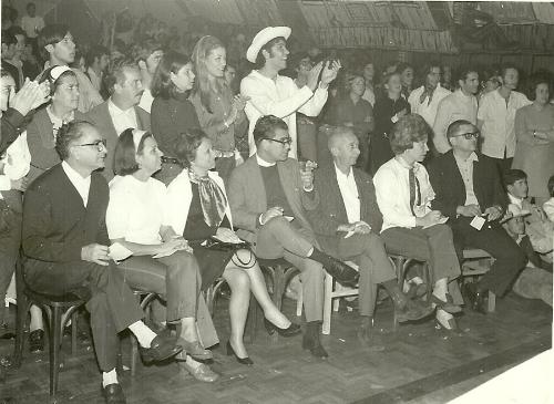 Identificados, da esquerda para a direita, sentados, Dr. Francisco das Chagas Costa (então agente do IBC local) acompanhado de sua esposa, Sra. Iara; dona Guli e seu marido prof. Rodrigo Octávio Torres Pereira; o empresário Aldo Bertozzi; e possivelmente a esposa do dentista Sidney Rezende, último sentado.