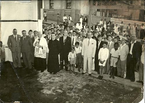 Jacarezinho vivia um momento importante de sua história naquela que foi sua fase áurea. Naquele dia o empresário e agricultor José Kalil entregava a Jacarezinho e região a moderna Agência Ford, com uma solenidade que marcou época. Depois os convidados dirigiram-se a vários pontos do magnífico prédio ainda hoje existente e se deixaram fotografar tendo o Padre Max (de Ribeirão Claro) à sua frente para benzer as várias divisões. Nesta imagem eles estão á frente do lavador e à frente, de terno branco, José Kalil (fal.), que tem a seu lado, também de branco, seu filho Douglas. Dentre as pessoas identificadas, entre o pai e o filho, Henrique (Haine) Hartmann (fal.) e que tem a seu lado Aluizio Rolin (fal.). Ao lado deste, Hélio Gentil. Atrás, de cabeça erguida, Alfredo Bottas (fal.). Esta foto completa a série de outras que publicamos sobre o mesmo acontecimento.