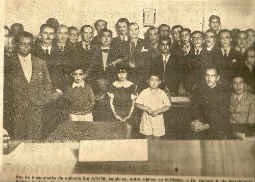 No dia 6 de janeiro de 1938 instalava-se nesta cidade a Agência local do Banco do Brasil, que neste mês completou portanto 73 anos. Esta foto foi feita por ocasião daquela solenidade e que contou com a presença do então Juiz de Direito Dr. Jacinto Anacleto do Nascimento (o 1º, em pé, da esquerda para a direita), do Prefeito Dr. João de Aguiar (que não aparece na foto), do Tabelião Antenor Rocha e dos administradores da Agência local, Maurício Rousseau e João Cândido Lima, além de funcionários da nova filial e personalidades da vida política, econômica e social da cidade.