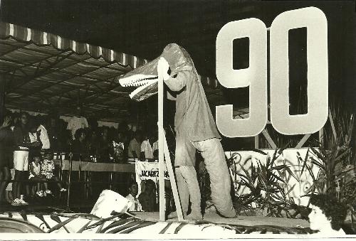 Em 1990 o Prefeito Adhemar Setti organizou um carnaval de rua que ficou na história desta cidade. Denominado de "carnaval noventão" em alusão aos 90 anos de emancipação política de Jacarezinho, a população acorreu à rua Paraná para prestigiar a bonita festa popular que se realizava naquela oportunidade. E os blocos e escolas de samba participaram ativamente dos festejos. Neste carro alegórico um jacaré estilizado olha em direção ao palanque em que estavam as autoridades tendo atrás de si o motivo daquele ano: os 90 anos.