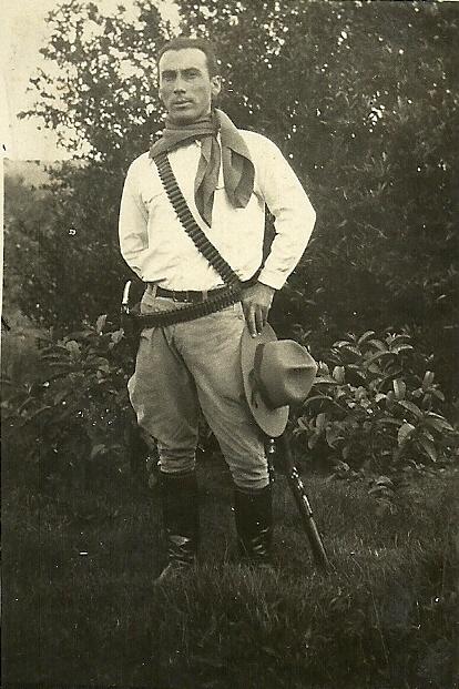 O jacarezinhense Sebastião Aguiar -mais tarde líder político e cafeicultor respeitado por todos também como cidadão- aparece nesta imagem trajando vestimenta gaúcha para incorporar-se aos revolucionários de 1930 que conduzirIam Getúlio Vargas ao poder. Conforme é possível ver, Sebastião encontrava-se devidamente armado para participar da revolução, idealista que foi durante toda sua vida.