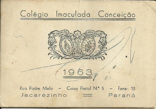 Durante muitos anos os colégios da cidade divulgavam seus estabelecimentos com uma publicação anual em que era registradas cenas e informações sobre a instituição. Eram sempre muito bem recebidos e guardados com carinho pelos pais e também pelos alunos. Este aqui publicado apresenta a capa do álbum do Imaculada Conceição divulgado em 1963. Como curiosidade veja-se o número do telefone: 13... Cinquenta anos depois a telefonia se espalhou pelo Brasil inteiro enquanto que naquela época ter uma linha telefônica era um privilégio reservado principalmente para as instituições públicas, colégios, médicos e farmácias. Depois, se sobrasse, para o povo em geral...