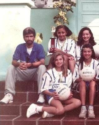 Tempos de criança, estudos e jogos de volei... Era assim a vida de uma pequena garota que também sonhava em um dia ser "alguém" na vida... Esta imagem dos anos 90 mostra a menina Grazi Massafera com suas amigas Samantha, Viviane e Karol e mais o prof. Cláudio (fal.) em uma pausa de um treino de volei. Hoje a menina alcançou seu sonho, depois de se tornar Miss Paraná é atriz consagrada da Globo. Em torno de 15 anos separam esta foto dela aqui em Jacarezinho para os dias de sucesso que atualmente vive.