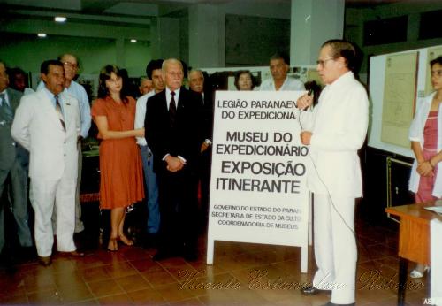 Como se vê na foto, o então prefeito, a época Dr. Adhemar Setti fazendo o discurso para os presentes na abertura da exposição, o presidente da Legião, expedicionários e a diretora de cultura, Salete Schuminski Ribeiro acompanhada de seus esposo, o Vereador Vicentinho.