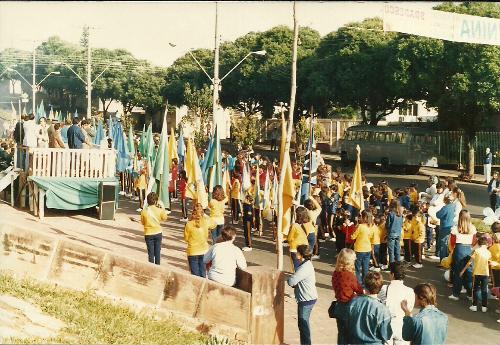 Além dos Jogos Estudantis promovido pelo antigo Colégio Cristo Rei, sua direção realizava também os Jogos Inter-Séries, estes com abertura em local de acesso público, no caso desta foto defronte à Catedral. Imagem dos anos 80.