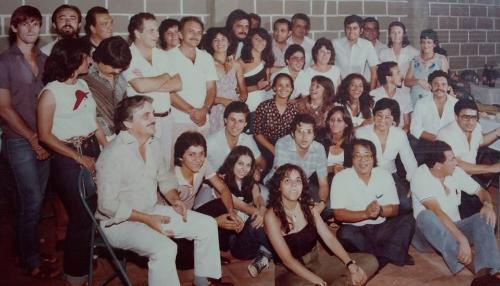 Imagem possivelmente da década de 80 mostra um grupo de alunos e professores no pátio da Casa do Estudante da Faculdade de Direito prestigiando alguma competição esportiva que se realizava no local. Dentre os professores, eu e o Dr. José Fernandes Heim.