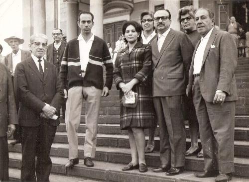 Com certeza foi uma cena de saída da Catedral após a Missa. Personalidades locais reúnem-se em um momento. São eles da esquerda para a direita o farmacêutico e líder político Anésio de Almeida Leite, o empresário Umberto Fidanza, a Sra. Maria Estela e seu marido então Prefeito Nelson Gomes de Oliveira e o empresário Francisco Muratori. Atrás do grupo duas filhas do ex-prefeito Aggeo Fleury da Silveira. Descendo a escadaria o servidor público municipal Alberto Foggiato Filho. A foto é do início da década de 70, período do primeiro mandato de Nelson Gomes de Oliveira.