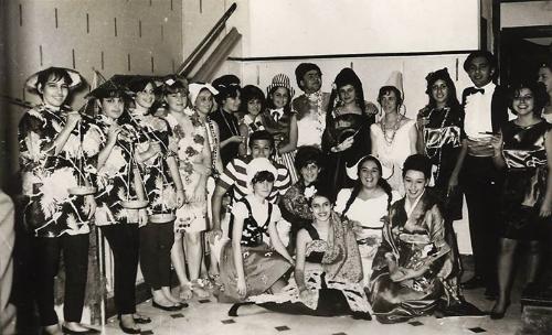 Esta imagem deve ser dos anos 70 e registra um grupo de amigos em uma noite de carnaval do Hotel Municipal que não só era hotel como também um ponto de encontro de amigos.