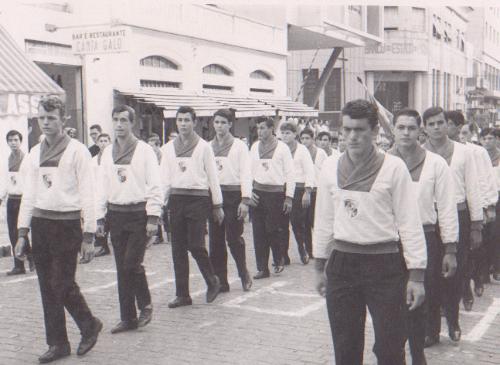 Neste desfile dos anos 60 em que participa o Colégio Cristo Rei é importante registrar alguns dos ícones que marcaram a história de Jacarezinho e que podem ser vistos à esquerda da foto. Inicialmente e aparecendo apenas em parte o toldo que protegia o Café Assis, antigo ponto de encontro de políticos e intelectuais desta cidade. Na sequência o lugar onde teve início o Restaurante Cantagalo, hoje funcionando em amplas e modernas instalações na rua do Rosário. Prosseguindo o prédio da loja A Nacional, de propriedade nessa época de José Baliego. Em seguida, o edifício do Bancp Bamerindus, com a sua cobertura onde à noite reuniam-se moradores da cidade (apenas homens...) naquele espaço que se convencionou denominar de "senadinho". E por último, o magnífico prédio do Banestado, demolido sabe-se lá por que. Enfim, lugares que registraram páginas memoráveis de nossa história.