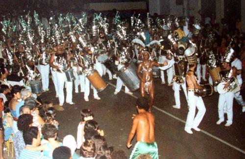 A exemplo de "Passa Depressa" a Escola de Samba Humildes da Favela" teve também um início modesto até se transformar numa das maiores que Jacarezinho já teve. Nesta imagem, dos anos 70, a bateria da "Humildes" desfila para o aplaudo geral.
