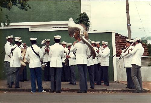 Durante muitos anos Jacarezinho manteve uma tradição, hoje esquecida: nas datas cívicas a banda saía desde a madrugada pelas ruas da cidade anunciando a alvorada daquele dia. Nesta imagem a Corporação Musical Salvador Ambrósio faz a "alvorada" do dia 02 de abril de 1987 pelas ruas centrais.