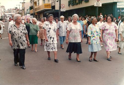 Em 1989, há vinte e cinco anos atrás, quando do 89º aniversário de Jacarezinho as senhoras coordenadas pelo SESC desfilam pela Paraná homenageando Jacarezinho. A primeira da esquerda para a direita é a Sra. Ione Santana de Oliveira, que por muitos anos dirigiu o SESC local e que recentemente veio a falecer.
