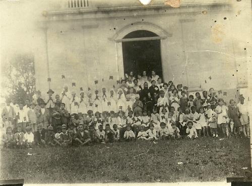 A edificação mais antiga desta cidade, a Igreja de São Benedicto, passou por várias transformações. Esta é de julho de 1928 vendo-se um grupo de católicos à sua frente. a Igreja sofreu várias reformas até que acabou como se encontra atualmente em um belo exemplar arquitetônico. Na época desta foto ela não tinha ainda sua janela lateral.