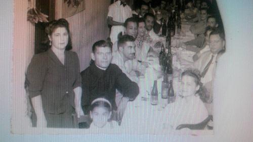 Esta imagem do final da década de 40 nos mostra a calmaria daqueles tempos: numa noite tranquila o prefeito Oswaldo Alcântara (à direita, de óculos) confraterniza-se em um jantar na pensão da dª Sinhazinha, tronco de numerosa família. Presentes suas filhas Ercídia e Neuzira e ainda netos. As noites eram de reunioes e conversas amigas por isso presentes também o Padre José, o tabelião Reinaldo Serra, Pedro Pierrot e outros familiares mais.