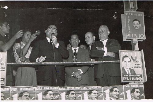 Realizado na Praça Rui Barbosa no ano de 1960 o então Governador Moysés Lupion (discursando) apresenta seu candidato à sucessão, Plínio Franco Ferreira da Costa (à sua direita, na foto). Plinio perdeu para Ney Braga que viria a ser o eleito. No palanque, com o microfone na mão, o locutor Sizenando Silva. O primeiro à direita é o então Prefeito Benedito Moreira, que tem ao seu lado o médico e empresário Armando Petrelli.