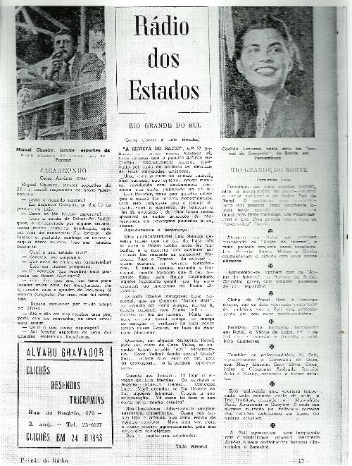 Quando Jacarezinho veio a ter sua primeira emissora de rádio, a ZYN-2, Rádio Difusora de Jacarezinho, foi uma vibração geral pois o rádio naquela época era a maior sensação que o país possuía. A nossa rádio começou a funcionar em 1948 no prédio do antigo Café Alvorada, ainda hoje existente. Logo após começaram a surgir vários programas, até mesmo de auditório, verdadeira sensação da época. E também a programação de esportes pois a Esportiva era a grande sensação do campeonato paranaense. E à frente do Departamento de Esportes da rádio estava Miguel Chueiri, por toldos conhecido como "Tufica". Naquele tempo também, embora eu fosse pouco mais do que uma criança, passei a escrever uma coluna na revista que também era a sensação de então, a Revista do Rádio. Escrevia sobre o rádio de Jacarezinho e em um de meus trabalhos entrevistei Miguel Chueiri, na edição do dia 12 de dezembro de 1950. E o resultado está aí, nesta reprodução de má qualidade mas que registra um capítulo da "era do rádio" em Jacarezinho.