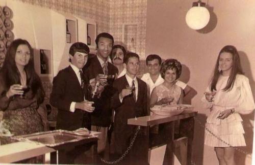 Quando o CAT - Conjunto de Amadores de teatro, conseguiu concluir a construção de seu Teatro de Arena (hoje, sala Geraldo Silva) organizou um coquetel para seus integrantes e também convidados. As obras prosseguiram nos anos seguintes até o término de seu grande auditório (Sala Jofre Elias). O flagrante é de um momento de descontração durante aquela solenidade de inauguração na cantina ao lado dessa sala. O Teatro de Arena foi inaugurado no dia 16 de outubro de 1970 e já no dia seguinte deu-se a apresentação da primeira peça teatral, com um grupo de Curitiba que apresentou "A Ratoeira". Esta sala tem capacidade para 200 pessoas.