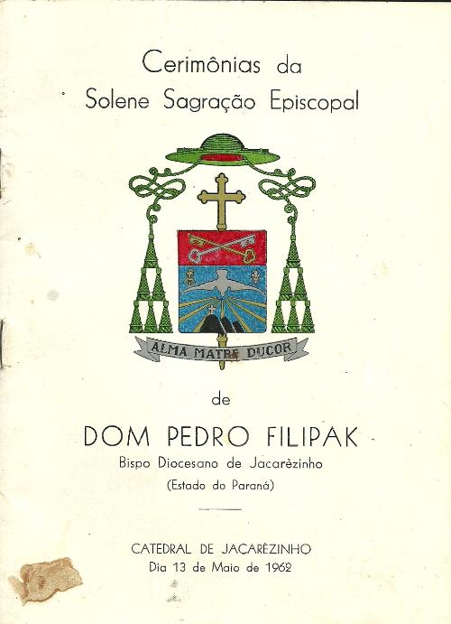 D. Pedro Filipak foi o quarto Bispo da história da Diocese de Jacarezinho e assim que aqui chegou se incorporou imediatamente à vida da comunidade. Querido por todos conduziu com sabedoria os destinos da Diocese. Sua Sagração Episcolpa deu-se no dia 13 de maio de 1962, na Catedral Diocesana com a presença de toda comunidade católica de Jacarezinho e da região. Foi celembrante D. Armando Lombardi, então Núncio Apostólico no Brasil e dentre seus padrinhos encontrava-se o então Governador Ney Braga. Interessante observar que em seu brasão figurava o Morro das Três Marias, de Jacarezinho, popularmente conhecido como Morro do Cruzeiro. É daquele dia o texto da cerimônia.