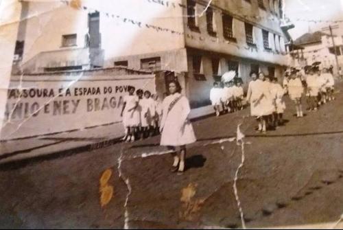 Desfila o Colégio Estadual Rui Barbosa pela rua Paraná sendo interessante observar a propaganda política estampada no muto com os dizeres" "A vassoura é a espada do povo". Era a propaganda política de Jânio Quadros e Rey Braga, candidatos respectivamente a Presidente do Brasil e Governador do Paraná. Ambos foram eleitos. Mas o "slogan" é que merece um comentário: o adversário de Jânio era o Marechal Teixeira Lott que, por ter defendido o então Presidente Juscelino Kubstechek recebera uma espada de ouro e sua campanha era pela legalidade do regime. E Jânio tinha como lema de campanha varrer a corrupção e o síbolo era a vassoura. Histórias de um tempo passado.